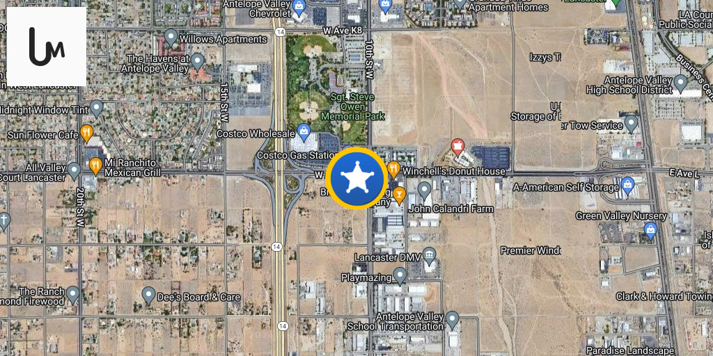 Los Angeles County Sheriff’s deputies initiated a pursuit of a reported stolen vehicle occupied by a female Hispanic adult and a 4-year-old child. The pursuit traveled through the city of Lancaster, where the suspect vehicle first collided with a center divider near 10th Street West and Avenue L. Despite the impact, the driver continued southbound on 10th Street West before crashing a second time into the divider.