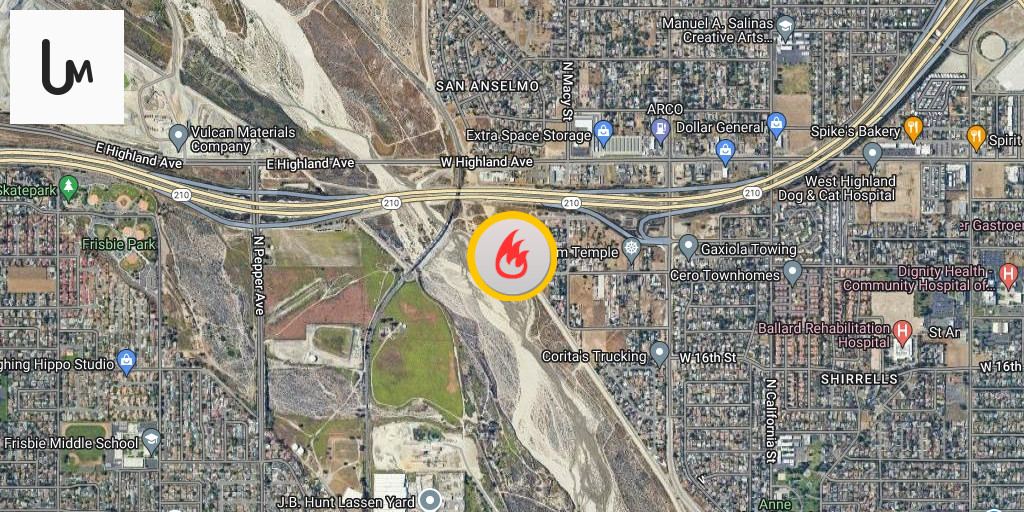 SAN BERNARDINO: SBCoFD is on-scene of a VEGETATION FIRE in the area of 2300 W. Lincoln Ave. Homeless encampment and approx one acre of brush on fire in the wash. Forward progress has been stopped. Crews will be on-scene for approx 30 minutes to ensure complete mop up.