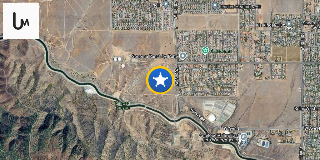 Palmdale,ca: 902r(rescue responding) 70th St W and Agena Rd at the Aqueduct missing fisherman LACoFD helicopter 15 responding caller reports male was fishing at the aqueduct and person is now missing. Fire department dive team responding.
