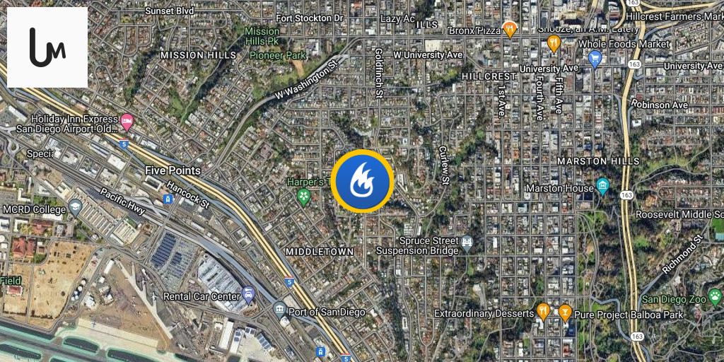 Firefighters today knocked down a blaze confined to an attic of a single-story home near the Middletown neighborhood, according to the San Diego Fire-Rescue department