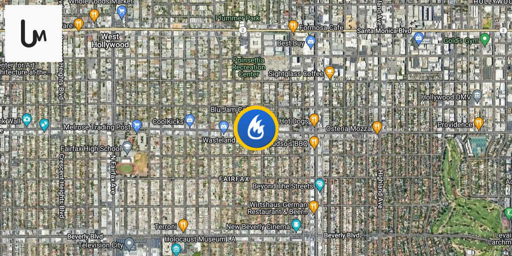 LAFD Alert-Knockdown - Fairfax Greater Alarm Structure Fire 647 N Poinsettia Pl FS61; 95 Firefighters. 49 Minutes. Confined To Attic of One-Story Row of Commercial Businesses. No Injury
