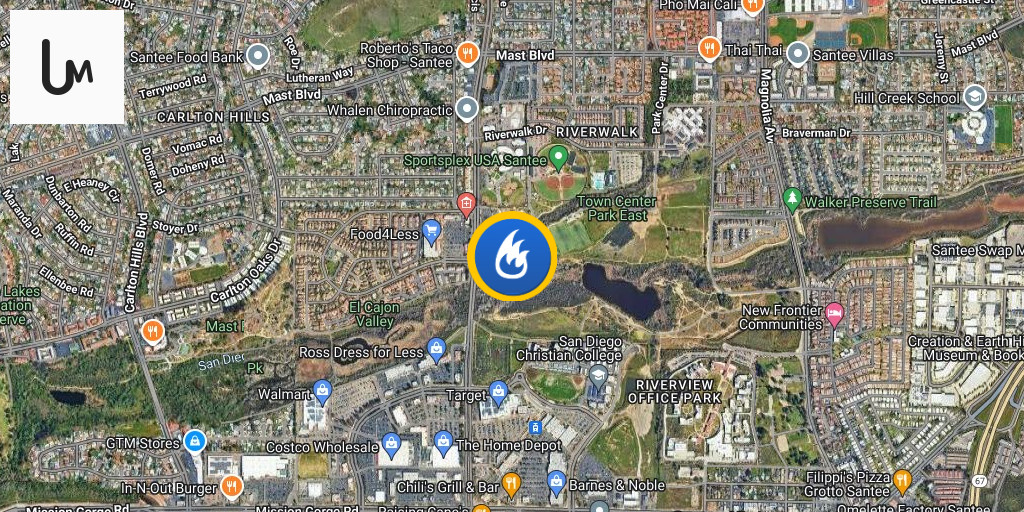 Firefighters battle a brush fire that broke out in a riverbed Sunday night in Santee